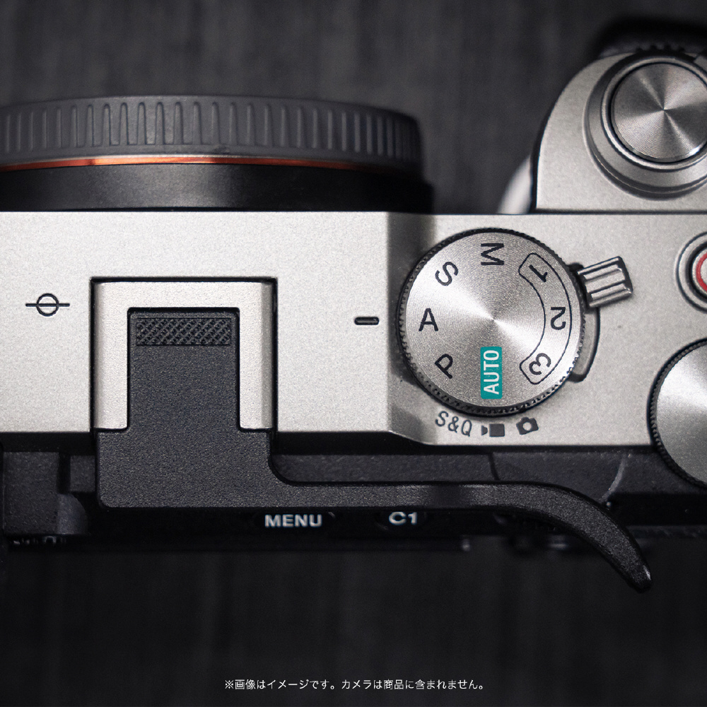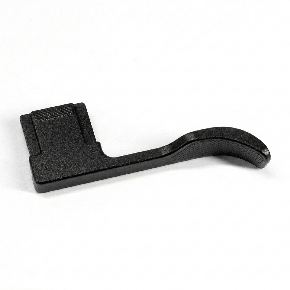 本製品は、カメラ本体のデザインを損なうことなく調和する、シンプルかつ上品な外観を備えたサムレストです。
