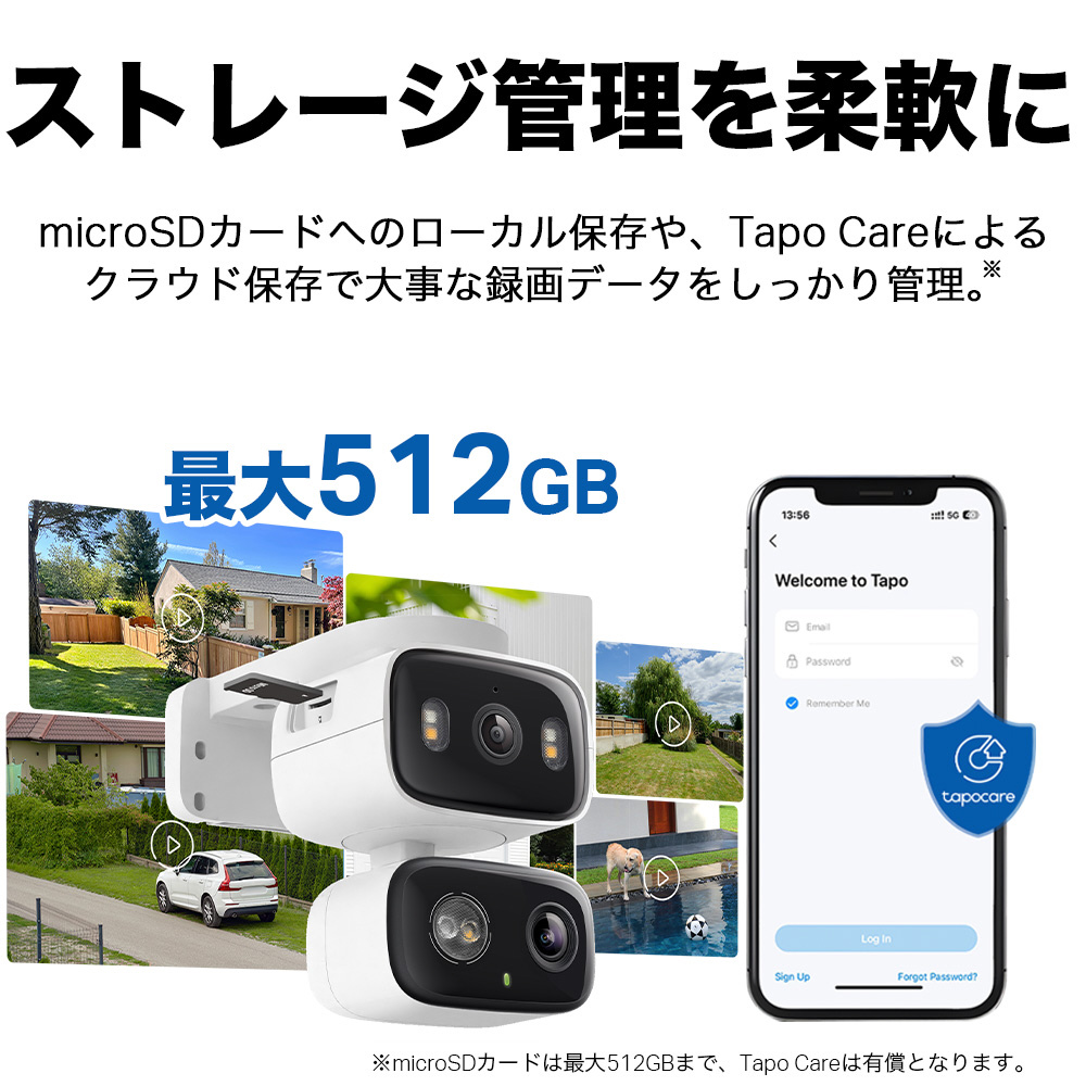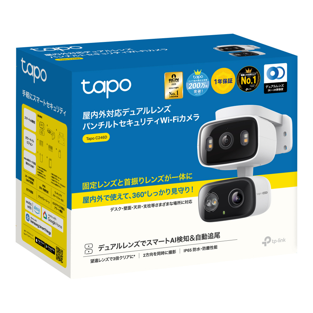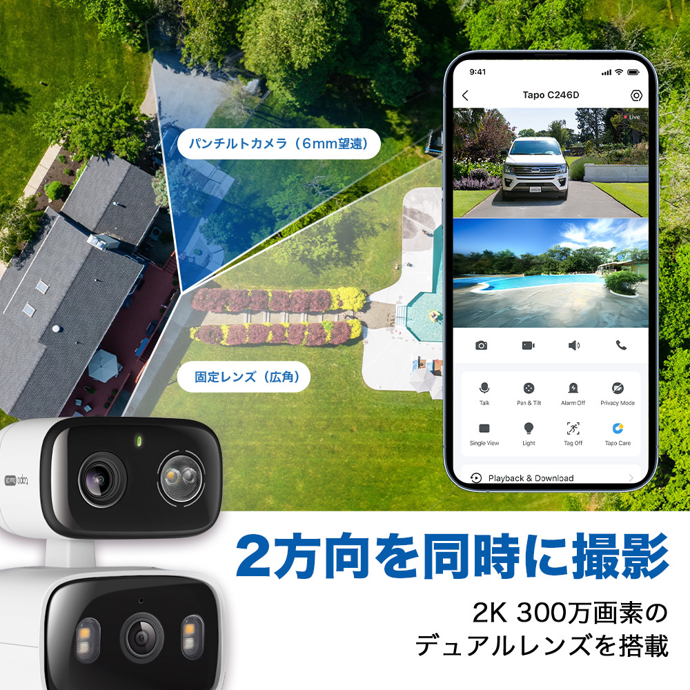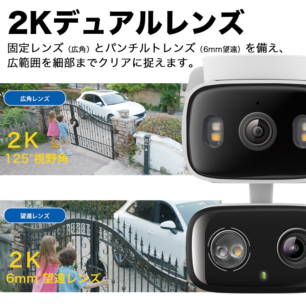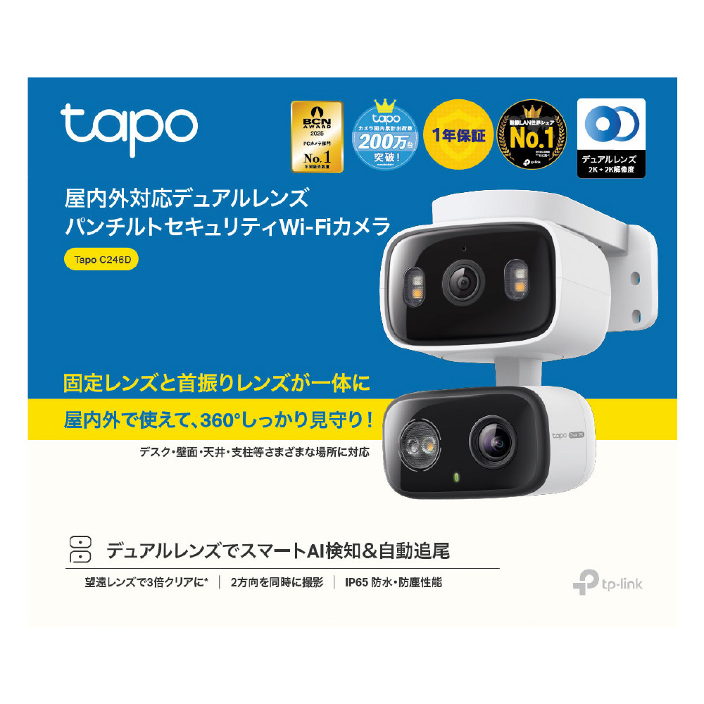 デュアルレンズで広く、細かく見守ろう。屋内外対応デュアルレンズパンチルトWi-FiカメラTapo C246D