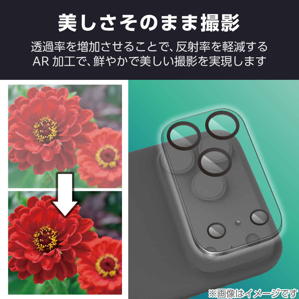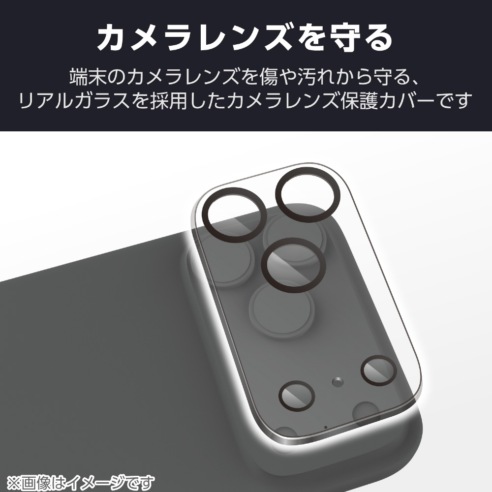 iPhone 17 Pro Max カメラレンズカバー 高透明 強化ガラス 10H 指紋防止 ブラック PM-A25DFLLP1CRN