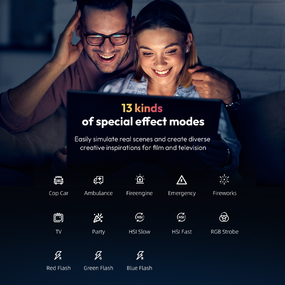 ◆360度RGB-RGBモードに設定すると、360ステップで虹のすべての色を選択することができます。撮影の背景の雰囲気作りなどに最適です。