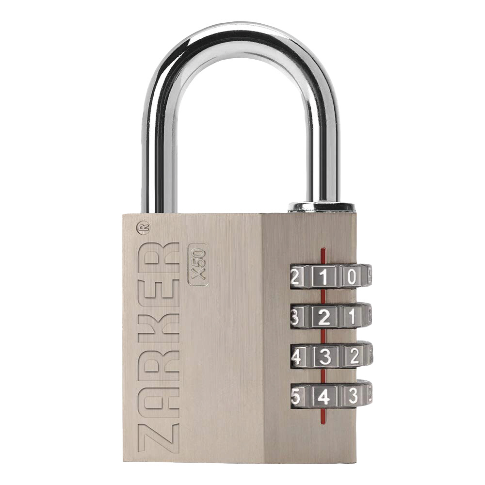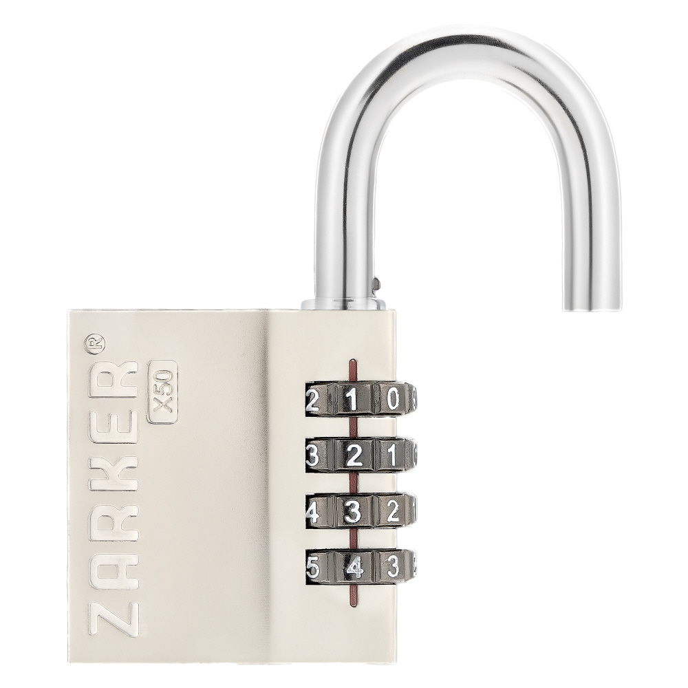 4桁 ダイヤル式 屋外向け コンビネーション南京錠 ツル径7.5mm シルバー X50