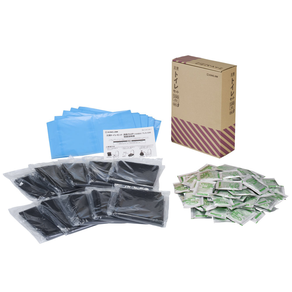 内閣府のガイドラインによると災害発生後は原則として3日間はその場(職場や学校など)に留まることが推奨されているため、備えるべき数量は最低でも3日分とされています。本製品には100回分の汚物収納袋と抗菌性消臭凝固剤がセットされており、複数人分の簡易トイレをコンパクトに備蓄できます。