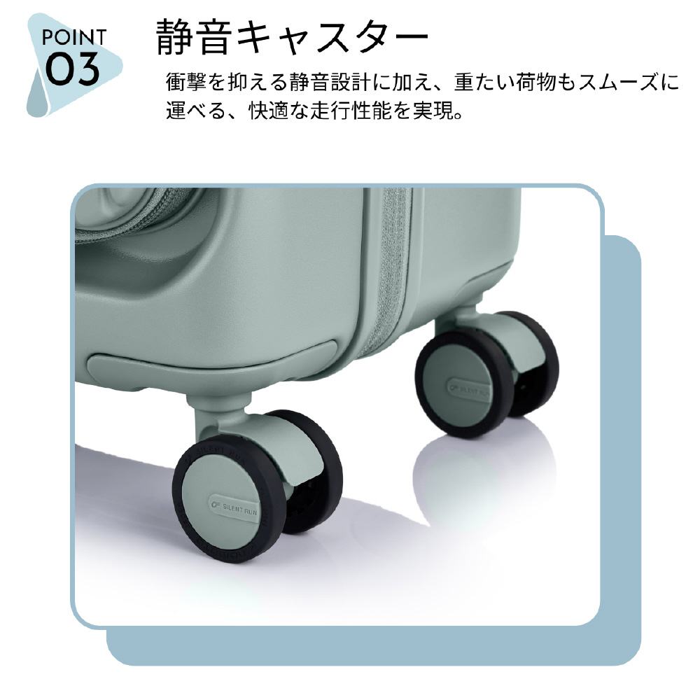 スピナー54は、1〜3泊程度の旅行に最適な機内持ち込み対応サイズ。新幹線・電車等で移動する国内旅行や修学旅行、短期の出張におすすめです。フロントポケットにはPC、タブレットなどの収納スペースがありビジネスシーンでも活躍します。