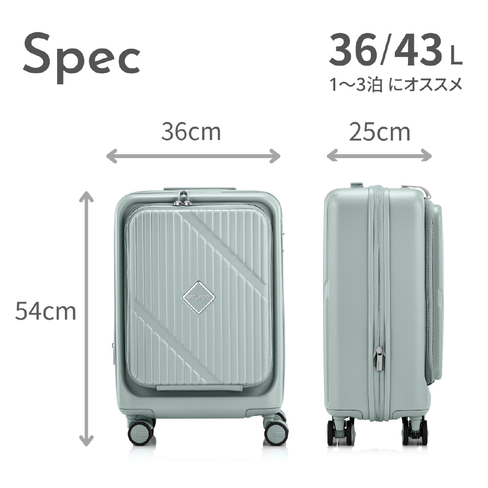 スピナー54は、1〜3泊程度の旅行に最適な機内持ち込み対応サイズ。新幹線・電車等で移動する国内旅行や修学旅行、短期の出張におすすめです。フロントポケットにはPC、タブレットなどの収納スペースがありビジネスシーンでも活躍します。