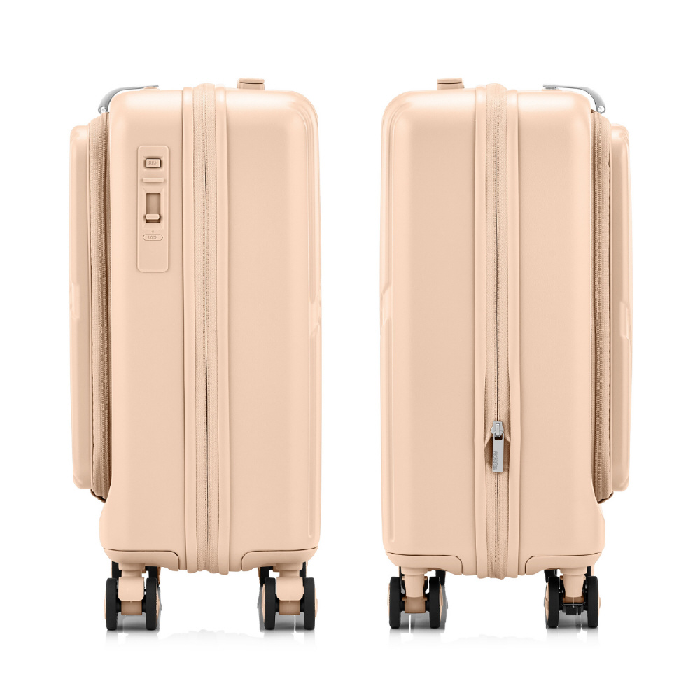 ワンプッシュブレーキ搭載。機内持ち込み対応の多機能でお洒落なフロントオープンスーツケース「VELOX(ヴェロックス)」