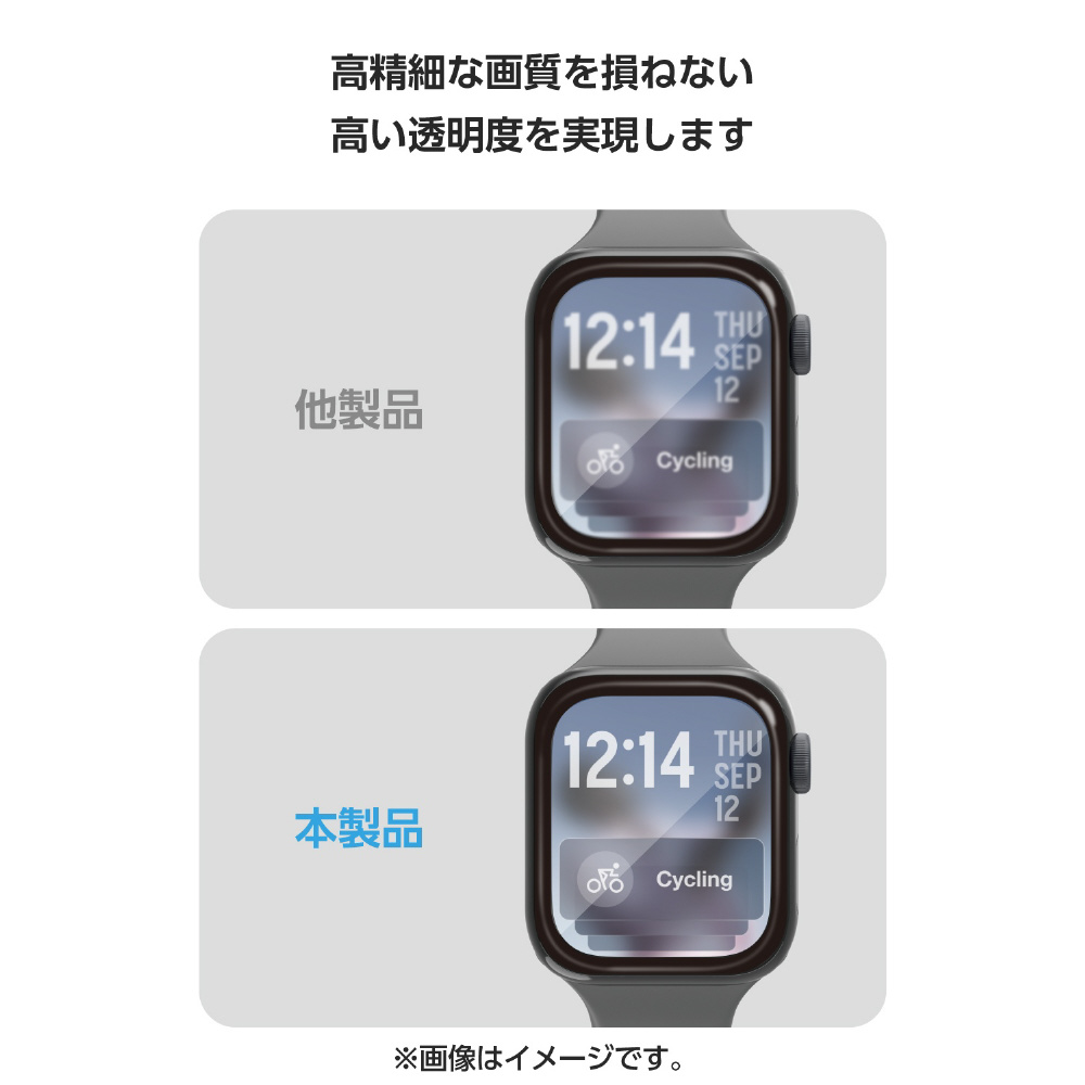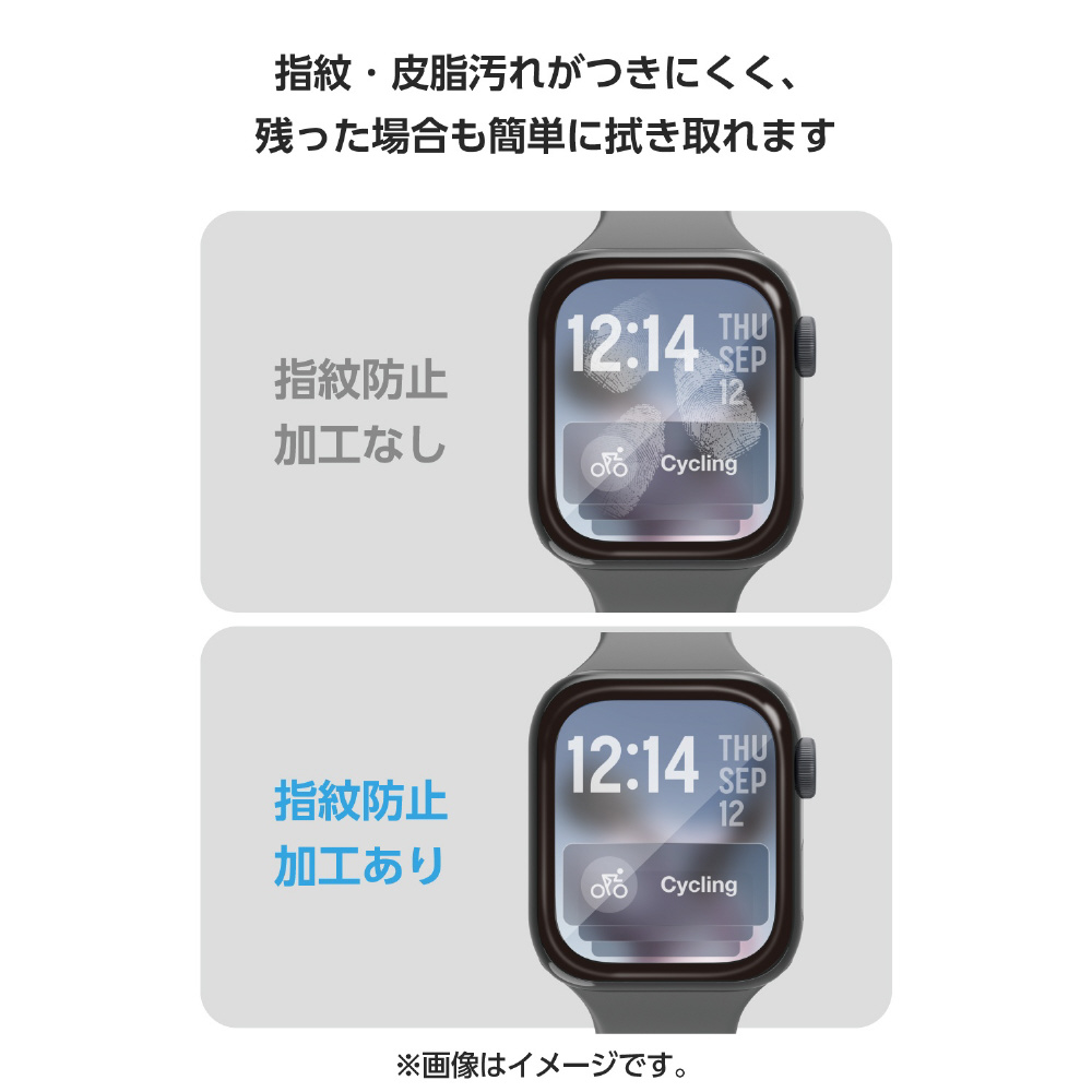 高硬度10Hの強化ガラスを採用し、画面の美しさを損ねずに傷や汚れから保護する、高透明・指紋防止タイプのApple Watch用フルカバーガラスフィルムです。