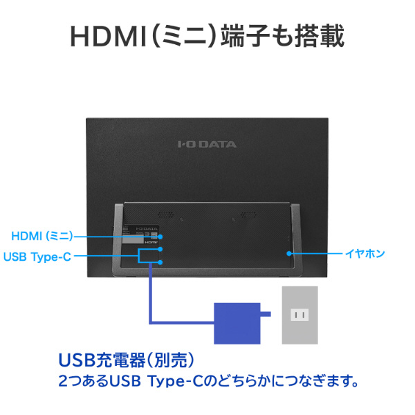 USB Type-C(R)とHDMI(ミニ)を搭載し、USB Type-Cなら、映像出力と給電をケーブル1本で行うことができ、外出先でも快適なマルチディスプレイ環境を手軽に構築できます。