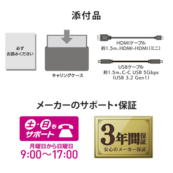 ■USB Type-C接続で電源不要・配線すっきり!USB Type-Cケーブルも標準添付