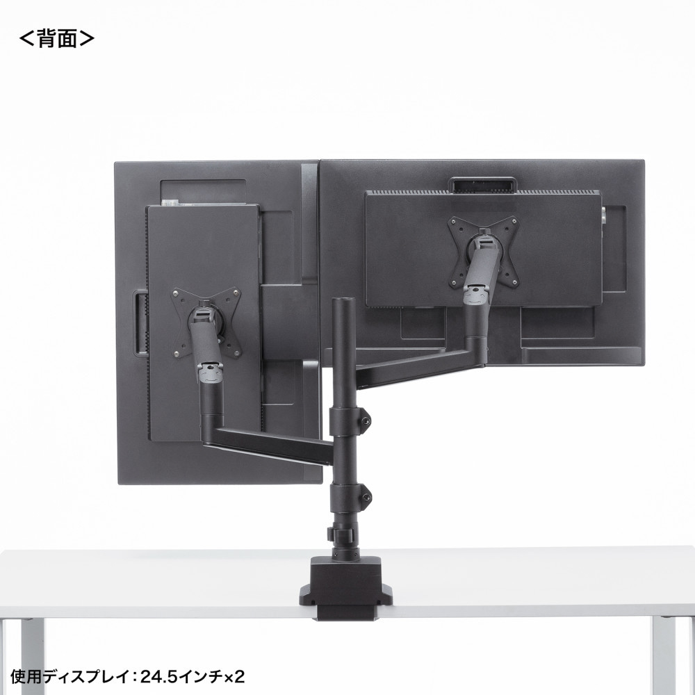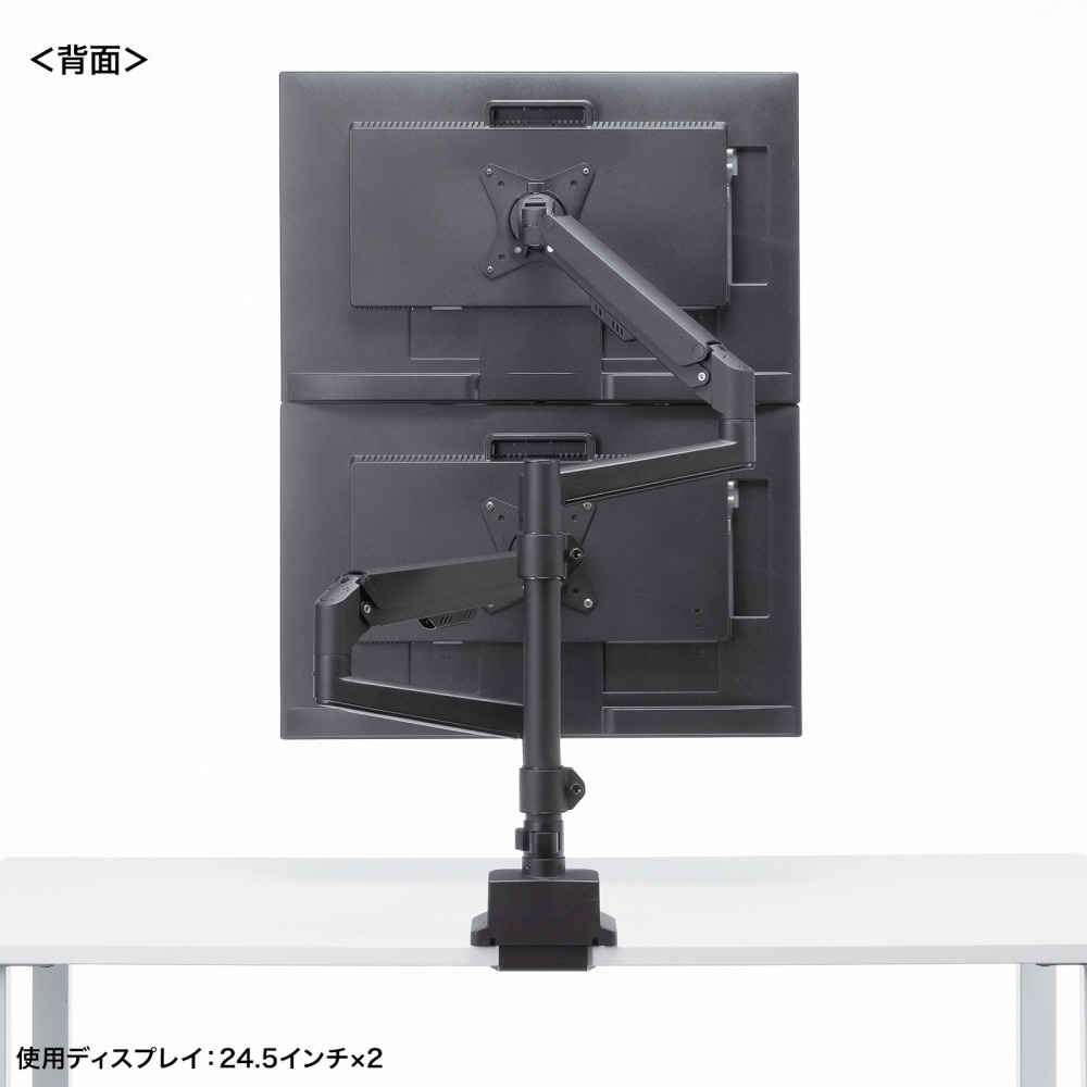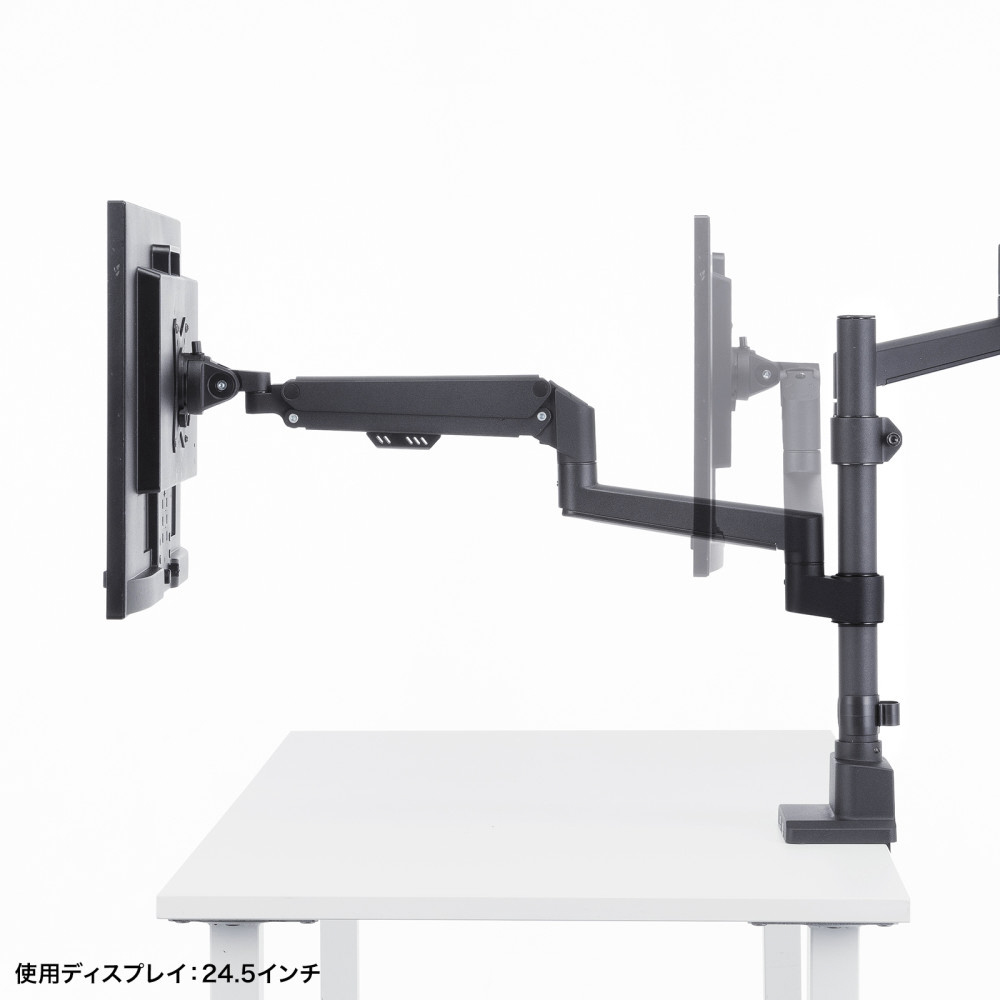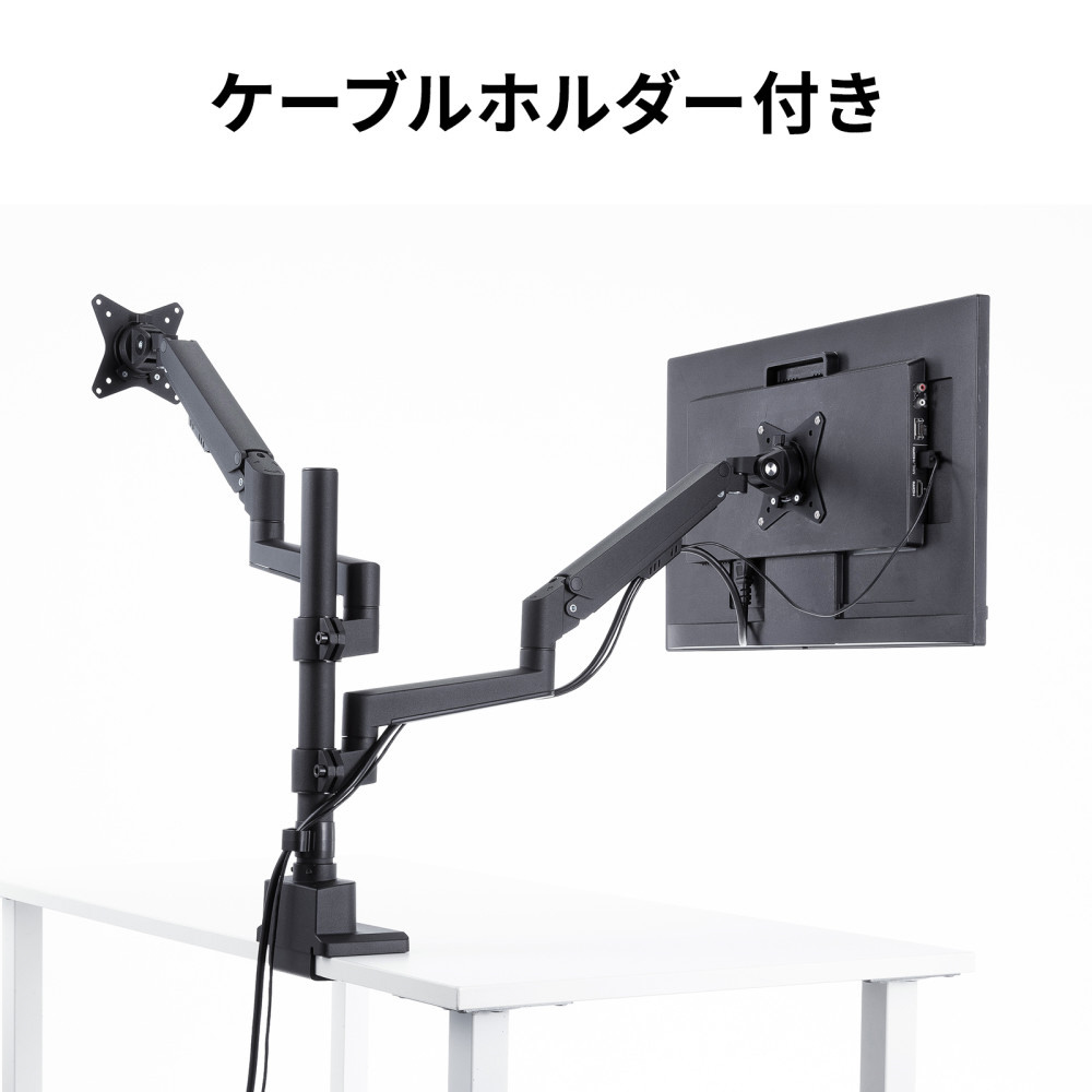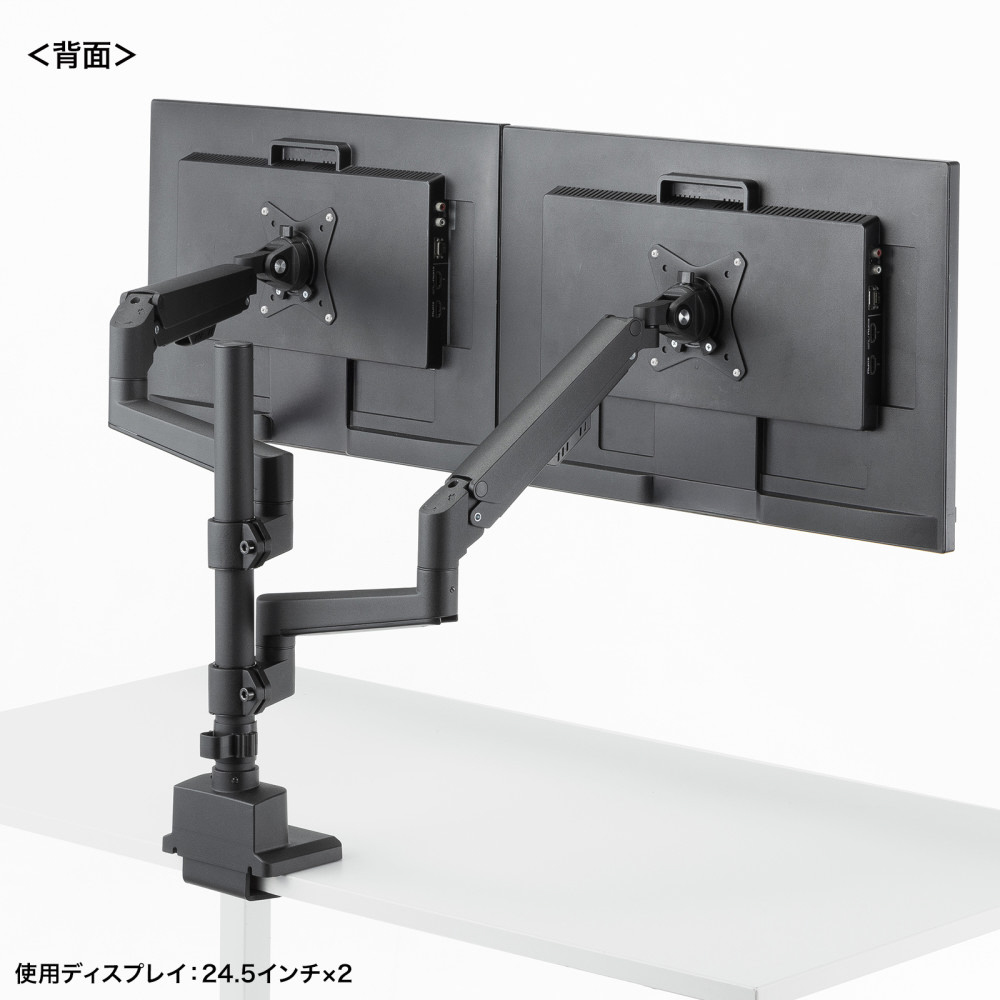 ■17〜32インチサイズのモニターに対応するガススプリング式のデュアルモニターアームです。