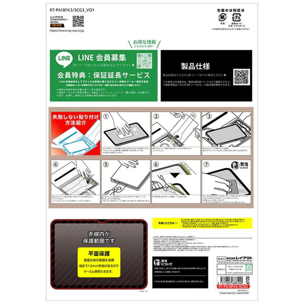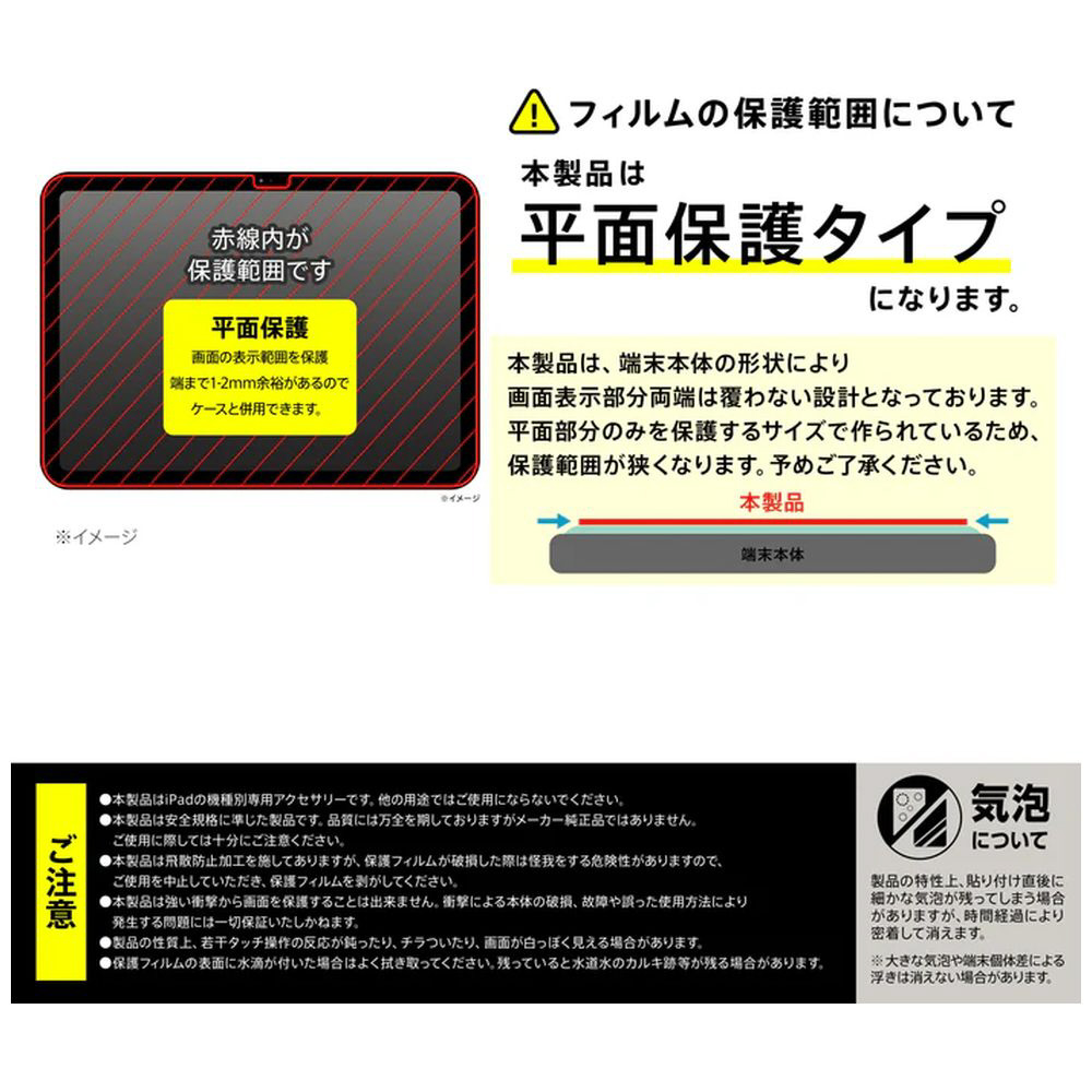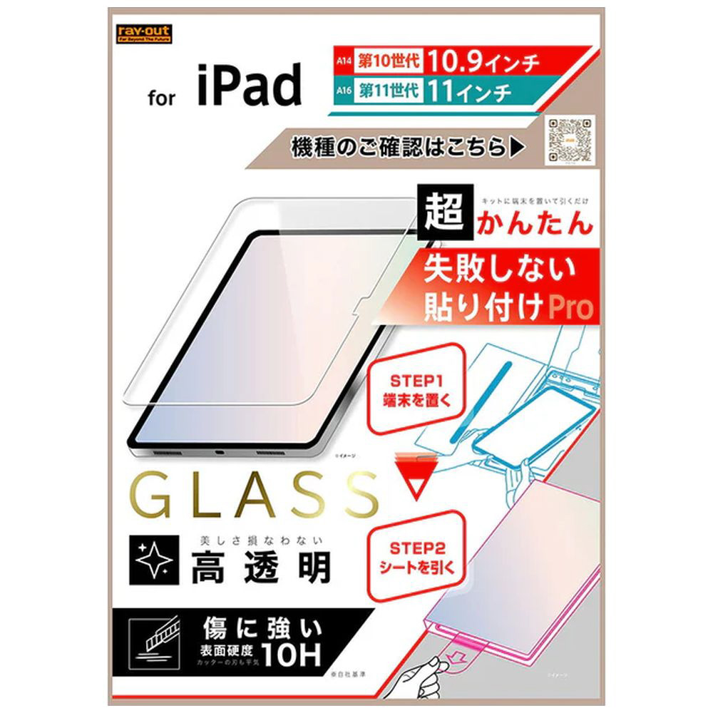 11インチ iPad(A16)、10.9インチ iPad(第10世代)用 超かんたん 貼り付けPRO ガラスフィルム 平面保護 高透明 / クリア RT-PA18FK3/SCG3