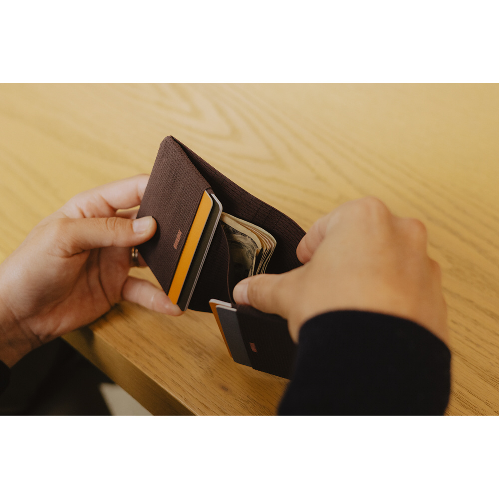 クラシックな二つ折り財布の形状をモダンに再構築したウォレットです。カードと現金を収納する十分な容量を確保しながらも、比類のない快適さと利便性を提供します。