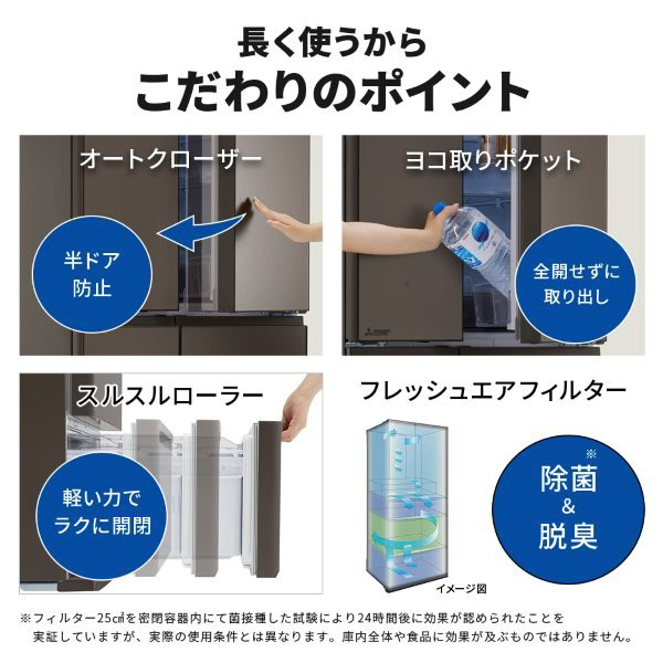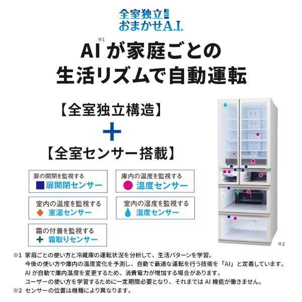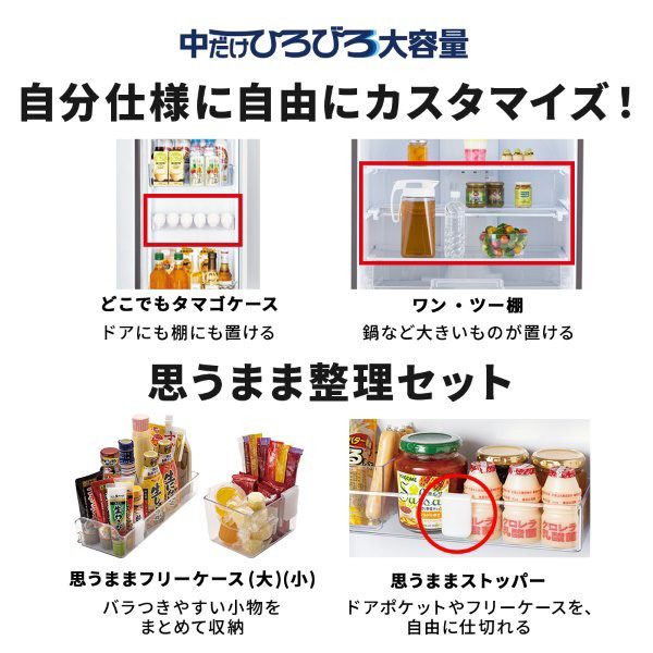 食品収納スペースの目安 ・冷蔵室: <220L> ・うちフレッシュゾーン: <26L> ・製氷室: <5L> ・瞬冷凍室: <16L> ・冷凍室: <64L> ・野菜室: <69L>