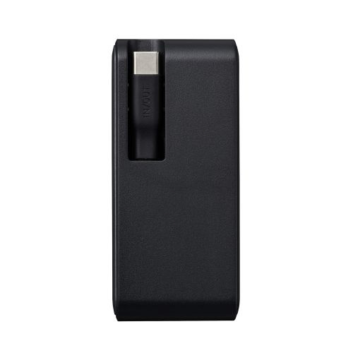 本体一体型の巻き取り式USB Type-C(TM)ケーブルを備えた、容量10000mAhのモバイルバッテリーです。
