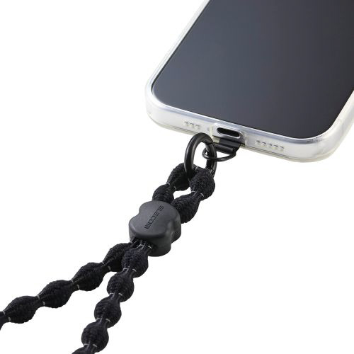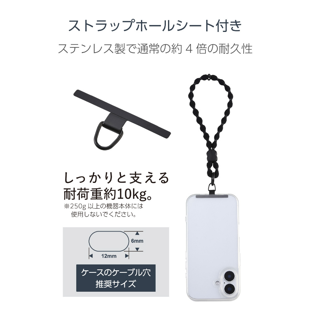 スマホストラップ ハンドストラップ 手首用 全機種対応 落下・紛失防止 やわらか伸縮タイプ 特許こぶ型ひも 反射糸で夜間も安心 軽量 ストラップホールシート付属 AIRFLEX ブラック P-STHFLBK
