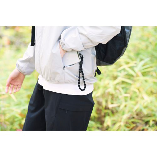手首や腕から提げて持ち歩けるので、両手がふさがらずスマホ操作もスムーズ。落下、盗難、紛失防止にもなります。