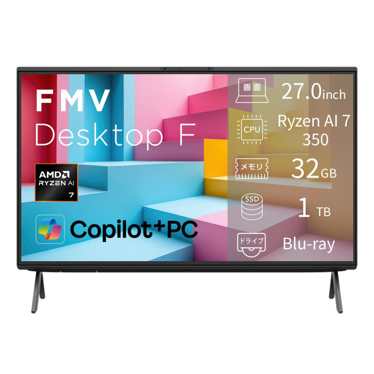 FMVF77L1BA モニター一体型デスクトップPC FMV Desktop F F77-L1 [AMD Ryzen AI 7] ブラック [27型 /Windows11 Home /メモリ:32GB /SSD:1TB /Microsoft 365 Personal /2026年1月モデル]