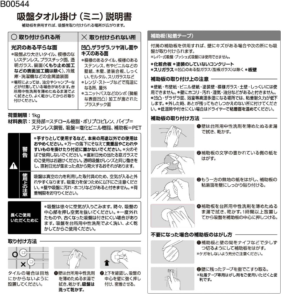 ・補助板が付属しております。・さびにくく丈夫なステンレスパイプです。 吸盤がしっかりつかない場合も、付属の補助板で設置可能です。