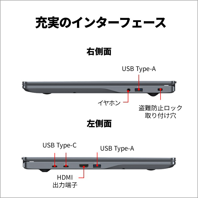 大画面ドライブレス薄型軽量ノートPC