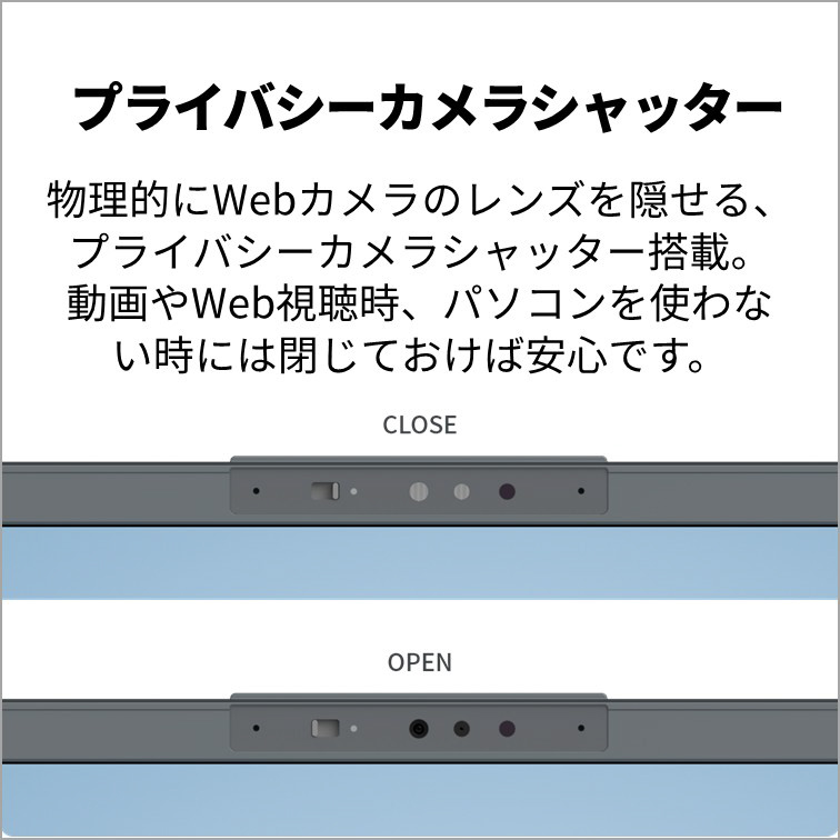 5MP Webカメラ内蔵(プライバシーカメラシャッター付)(有効画素数 約500万画素)Windows Hello対応