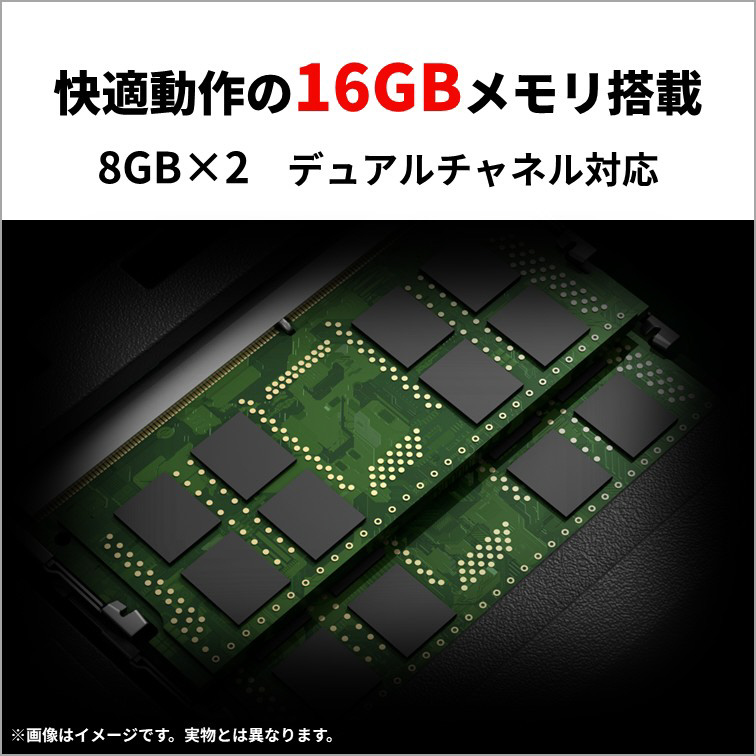最大16GB(デュアルチャネル対応 LPDDR5X-7500)