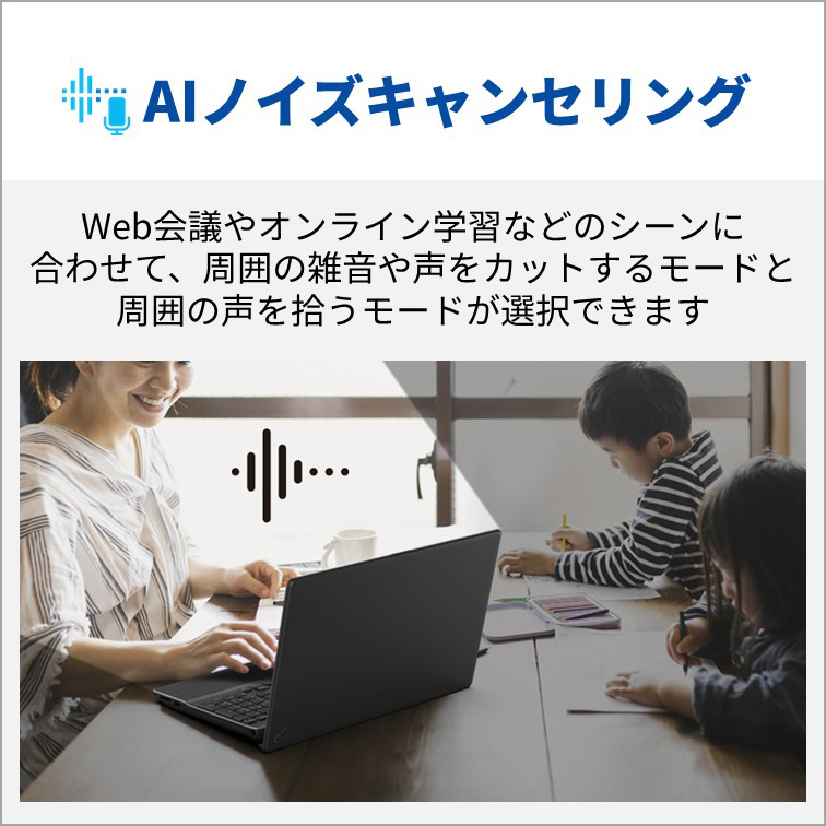 [オーディオ機能]チップセット内蔵+High Definition Audio コーデック [スピーカー/マイク]ステレオスピーカー内蔵/デジタル(ステレオ)マイク内蔵
