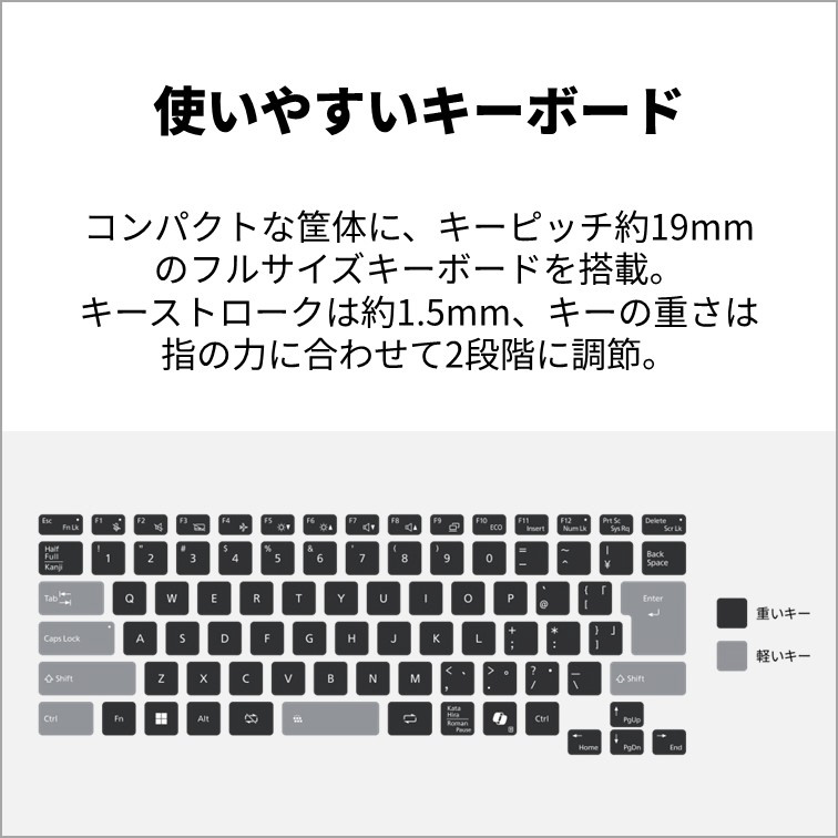 [キーボード]バックライト付、キーピッチ約19mm/キーストローク約1.5mm/84キー、JIS配列準拠(かな無し) [ポインティングデバイス]フラットポイント(高精度タッチパッドジェスチャー機能対応)
