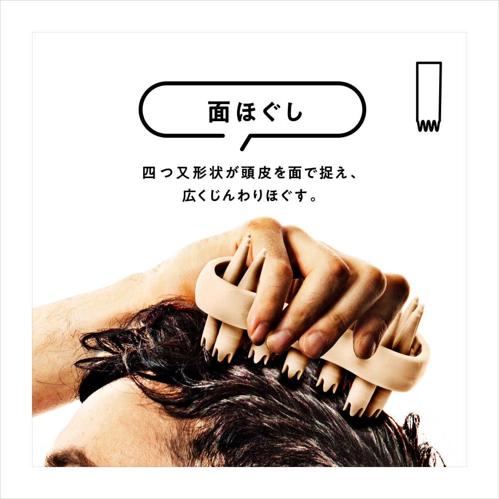 2種類の突起が指では味わえない刺激で頭皮をほぐします!