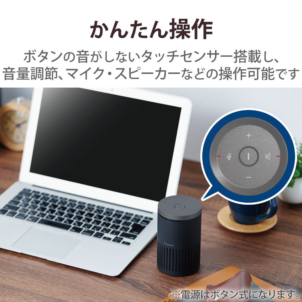 タッチ操作で音量調節、マイクON/OFF、スピーカーON/OFFなどの操作が可能。ボタンの操作音がしづらいタッチセンサーを採用しているため、マイクやスピーカーを操作しても会話を妨げません。