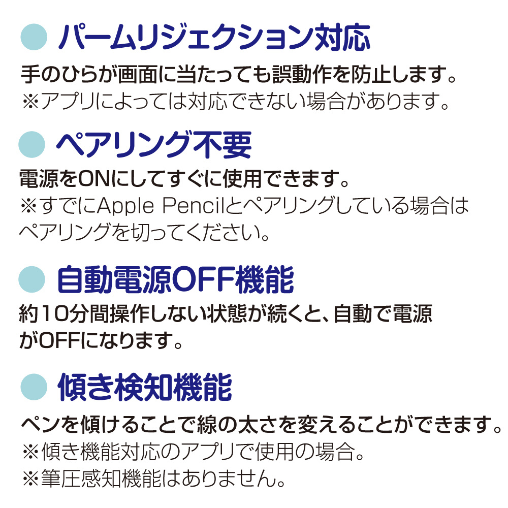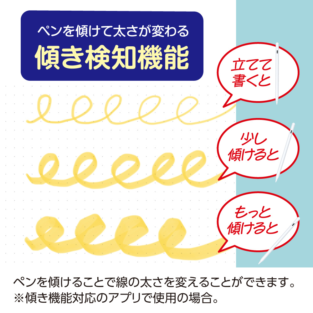 ※傾き機能対応のアプリで使用の場合。※筆圧感知機能はありません。