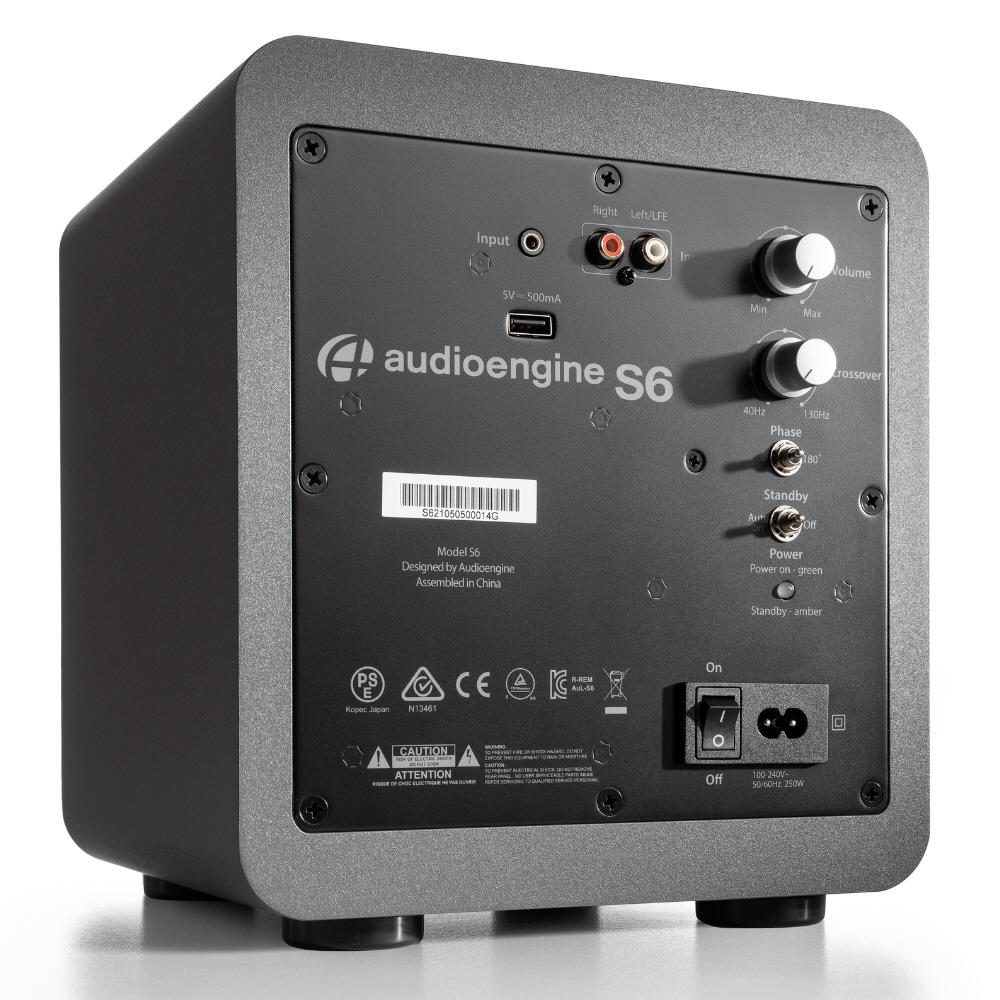 Audioengine S6パワード・サブウーファーは、 超小型サブウーファーとしての性能の新しい基準を打ち立てました。わずか25 x 25cmのサイズ、そして7kg弱の重さのS6は、デスクトップ、ゲーム、ホームシアターをはじめ、 お好みの小さなセットアップに最適なコンパクトなパワード・サブウーファーです。