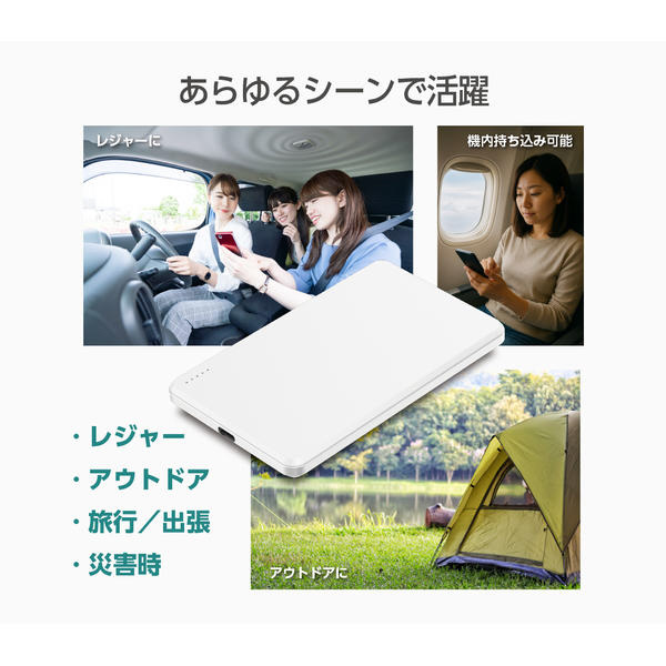 準固体モバイルバッテリー 5000mAh DC12/24V USB充電器 付属 ホワイト No.8005