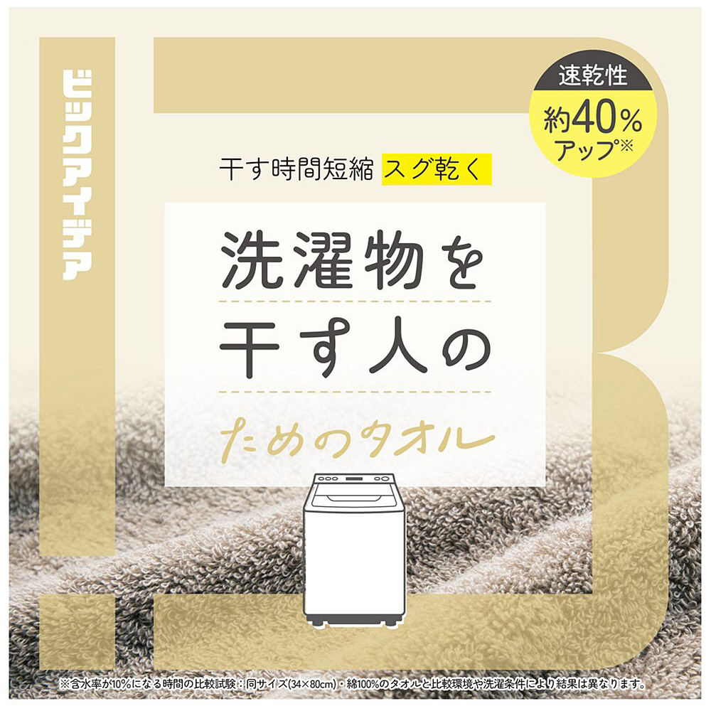※1:含水率が10%になる時間の比較試験 同サイズ(34×80cm)・綿100%のタオルと比較