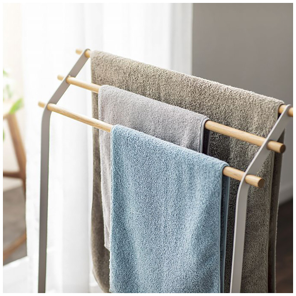タオルを干す際、「ヘム(短辺のふち)」に水が溜まることが、乾きにくさの一因です。