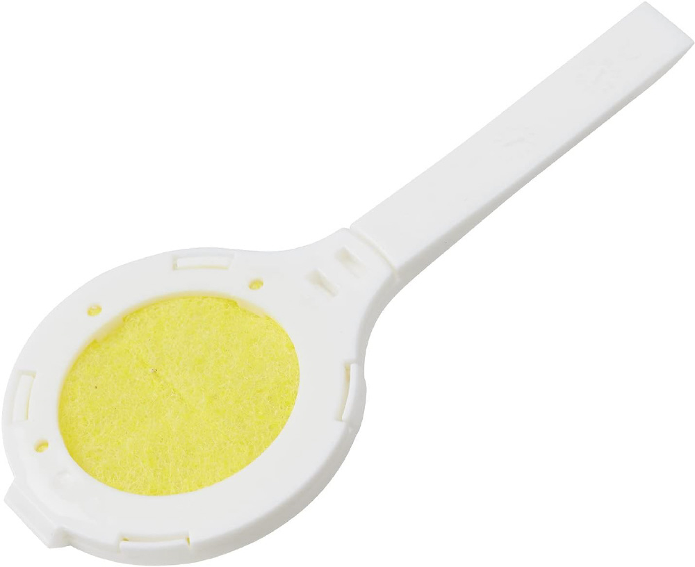 トイレノズルに通すだけでノズル表裏が一気に掃除できる円形クリーナーです。