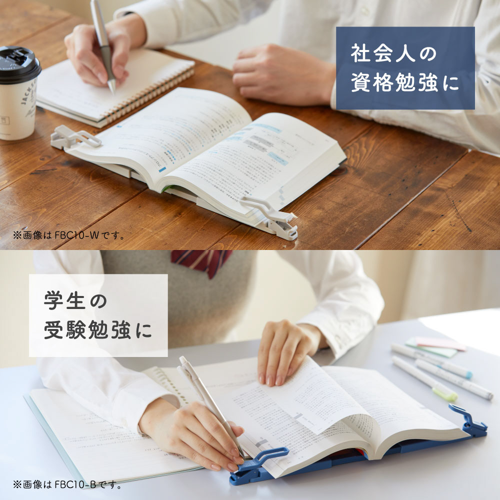 ●左右に分かれたクリップでしっかり支えるため、厚みやページ数の偏りに関わらず安定して固定することができます。