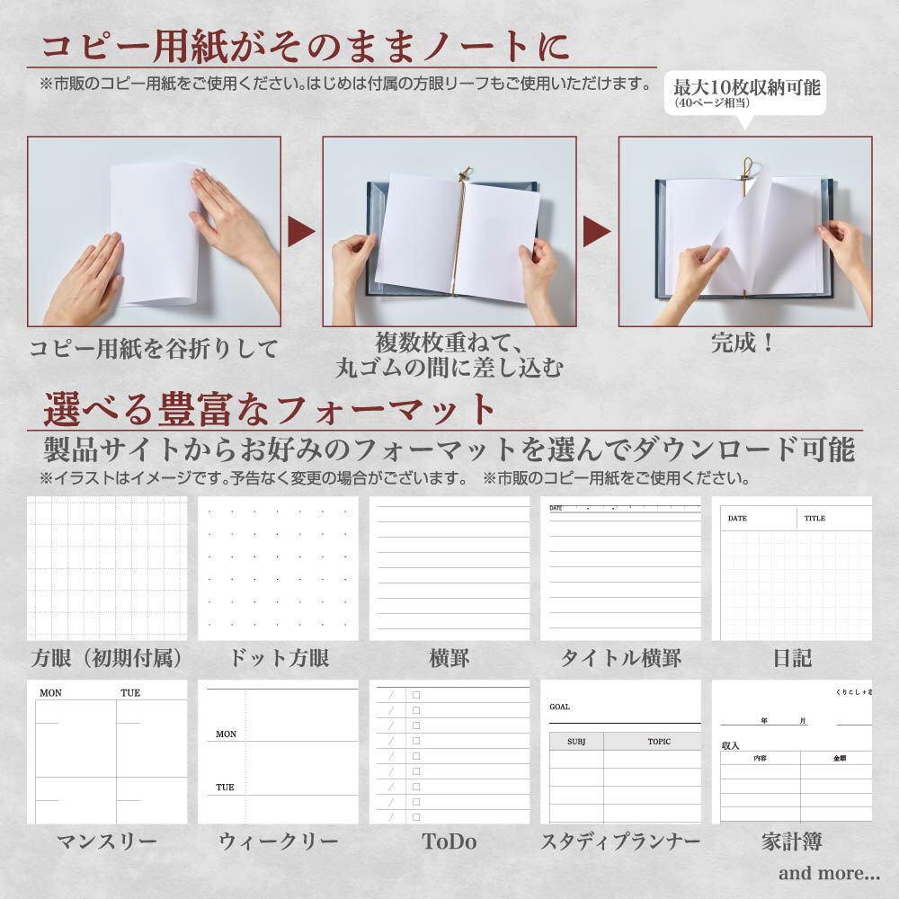ノートと書類を1冊にまとめて管理できる