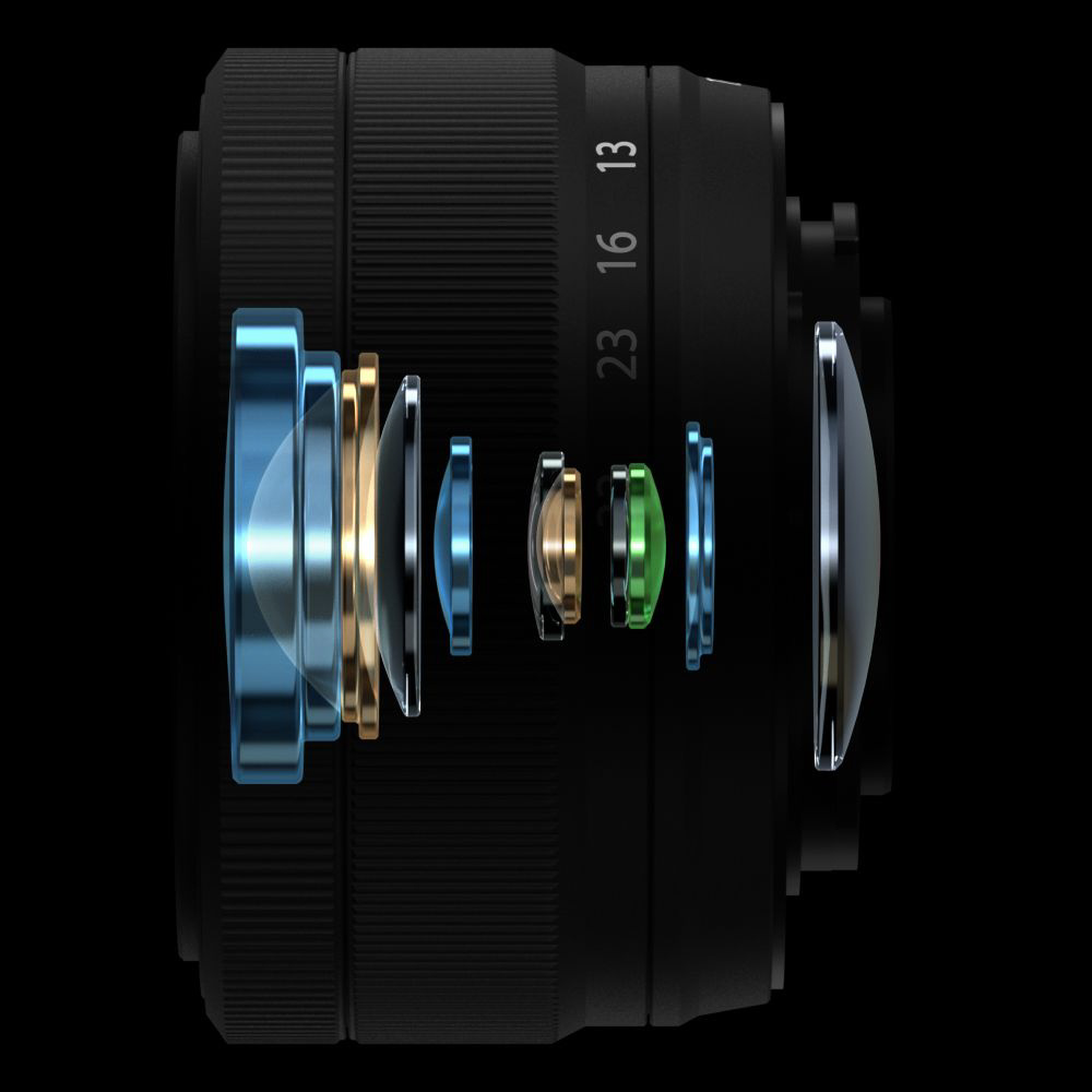 広角13mmから 標準33mmをカバーしながらも、全長37.5mm(レンズ収納時)、質量約125gで富士フイルムのズームレンズとして最小・最軽量を実現。