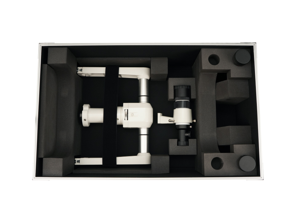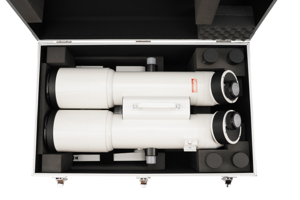 天体観察セットを、まるごとひとまとめ。同時収納できる製品? 対空双眼鏡BT126SS-A鏡筒? HF2経緯台? 暗視野ファインダーII 7倍50mm(ファインダー)を取付けたまま収納可)? 31.7mm径接眼レンズ4本(SLVシリーズなど)