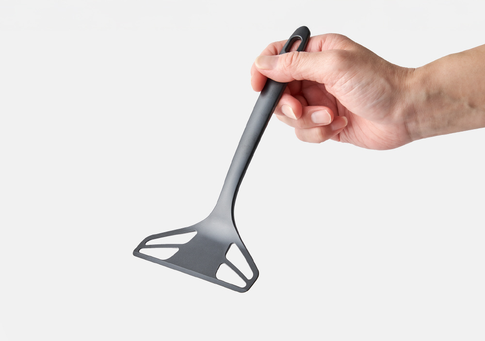 一般的な卵焼き器(幅12〜14cm)にちょうどいい幅10cm。短めのハンドルだから、小回りが利いて扱いやすい。ミニターナーとしても活躍。