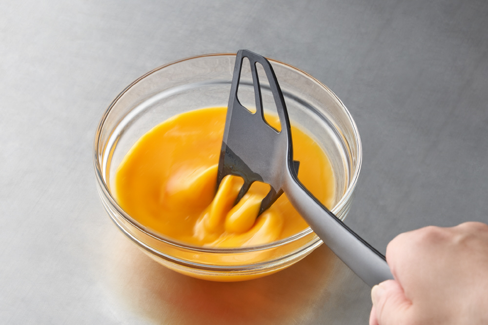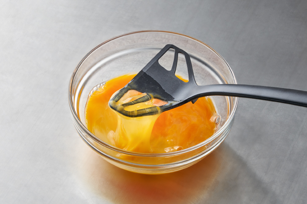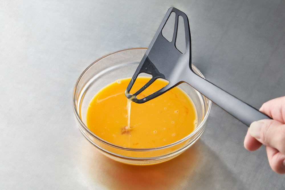 朝の忙しい時間にパパっと作れます。朝食やお弁当作りに活躍。先端の卵溶き穴で、卵を素早く均一に溶くことができます。