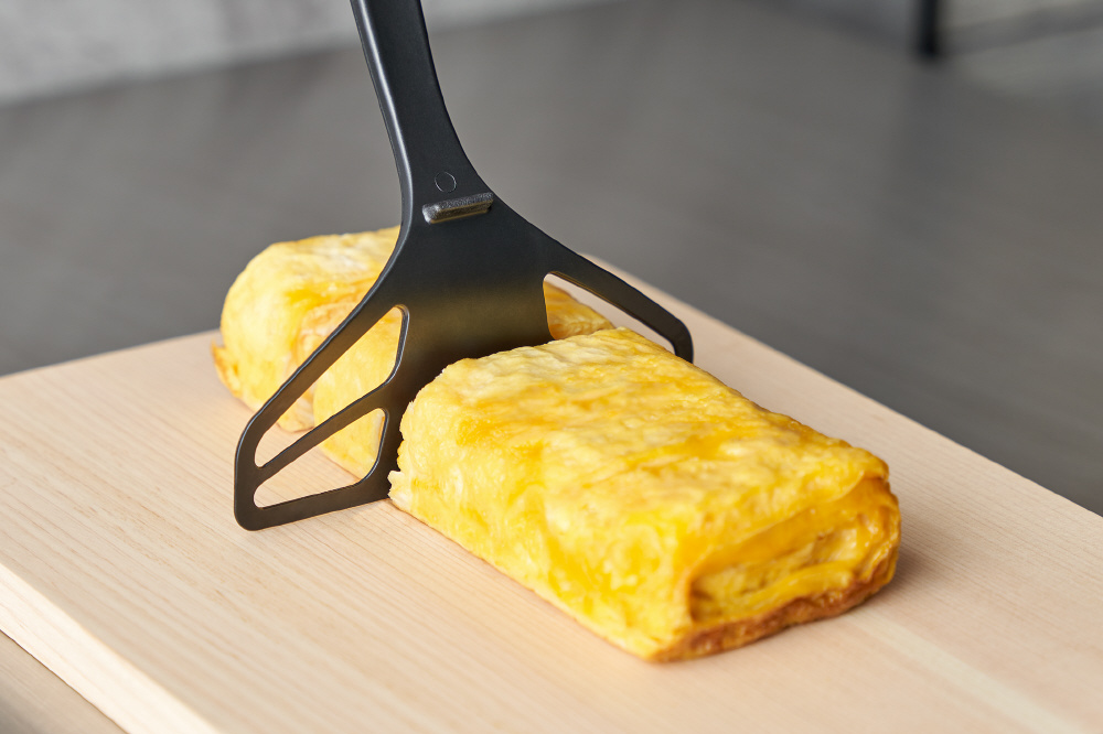 「溶く」「巻く」「切る」が一本でできる卵焼き用ターナー。