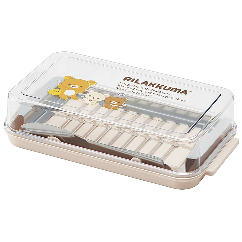 200gのバターを一度に20個にカット。手に触れずバターを10gずつカットできます。手も汚れず、楽々。なによりキレイにバターが保存できる優れもの。お菓子やパンを作るときの分量の目安にも便利です。ケースに収納できる先割れバターナイフ付き。