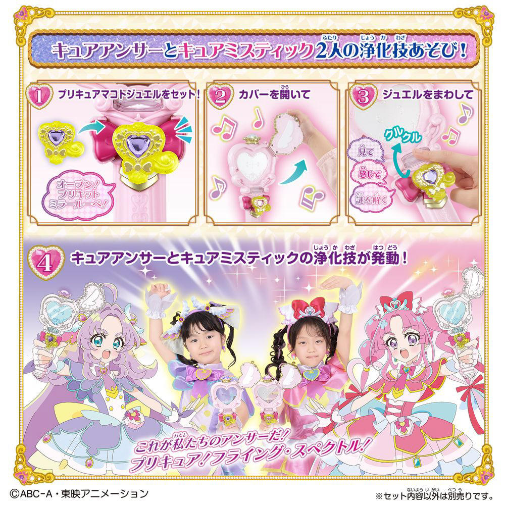 付属のプリキュアマコトジュエルをセットして、プリキュアの変身遊びや、番組オープニング曲・エンディング曲を楽しむことができます。