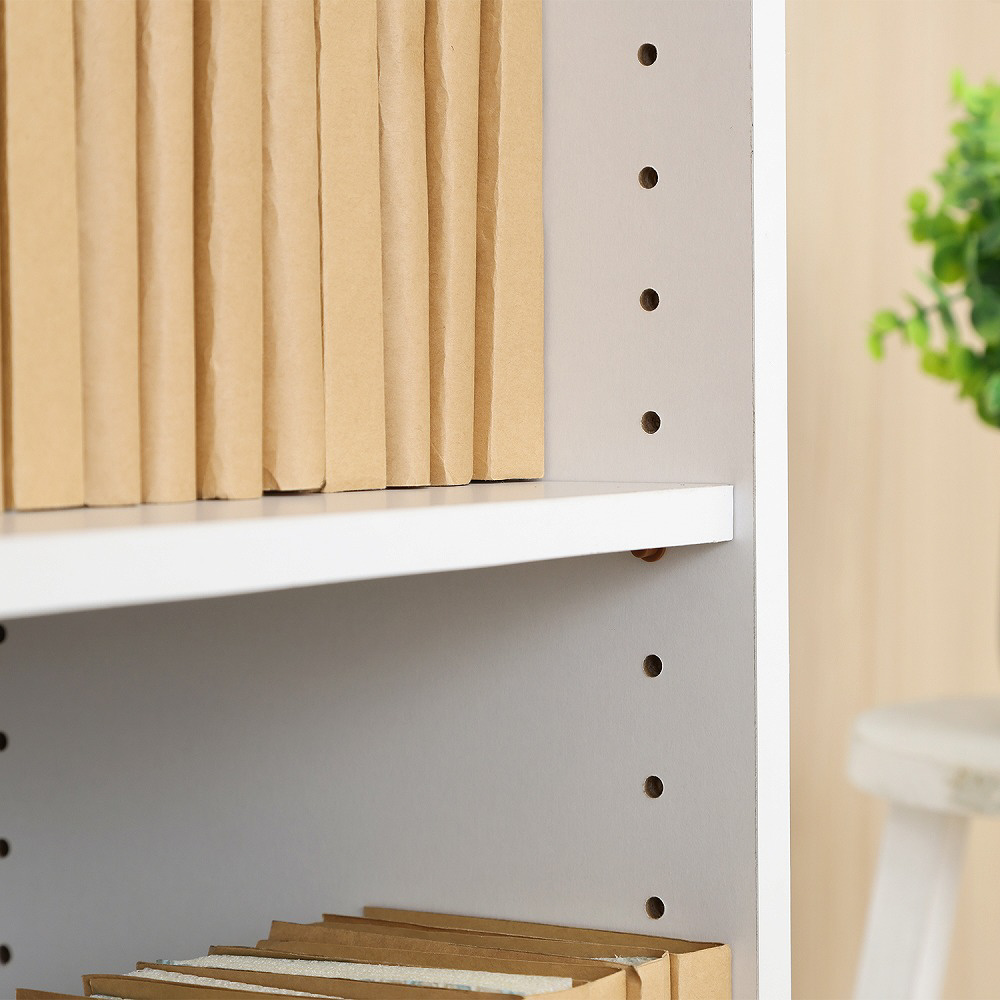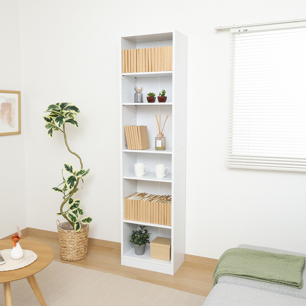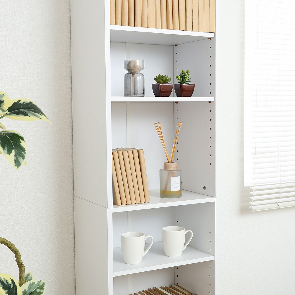 中央の固定棚を除く4枚の棚板は高さを調節できます。