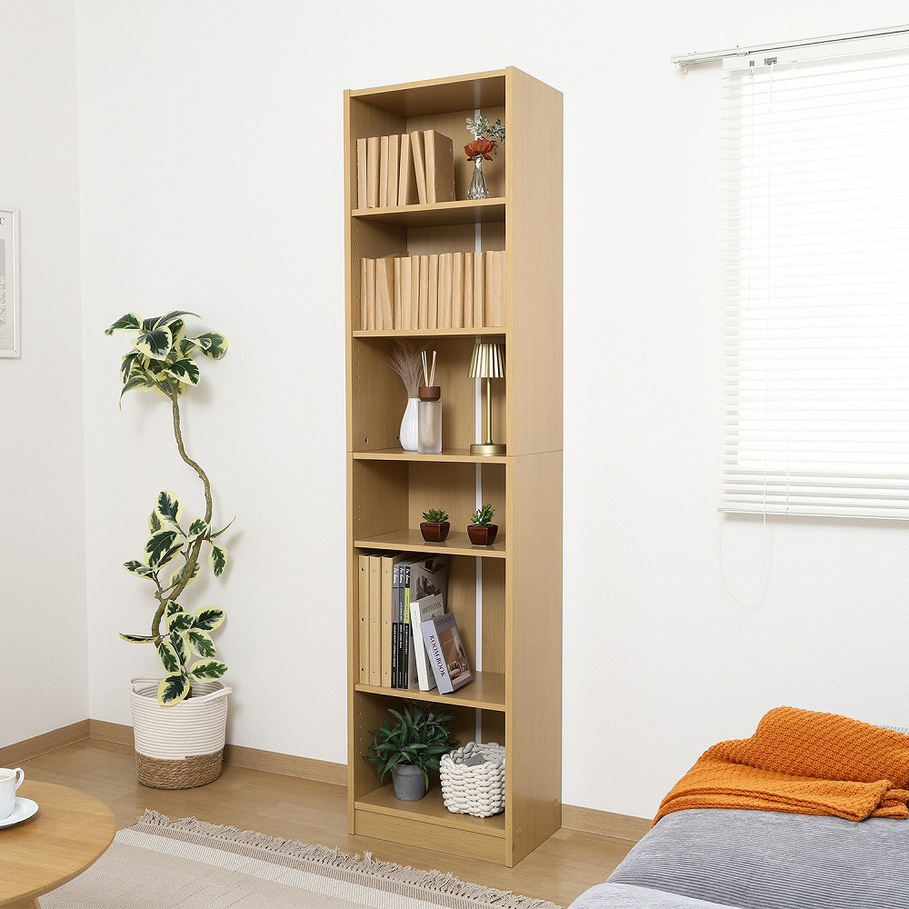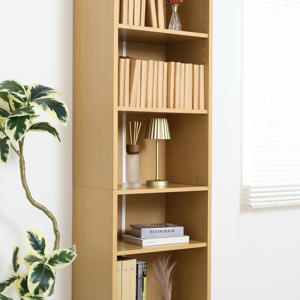 中央の固定棚を除く4枚の棚板は高さを調節できます。