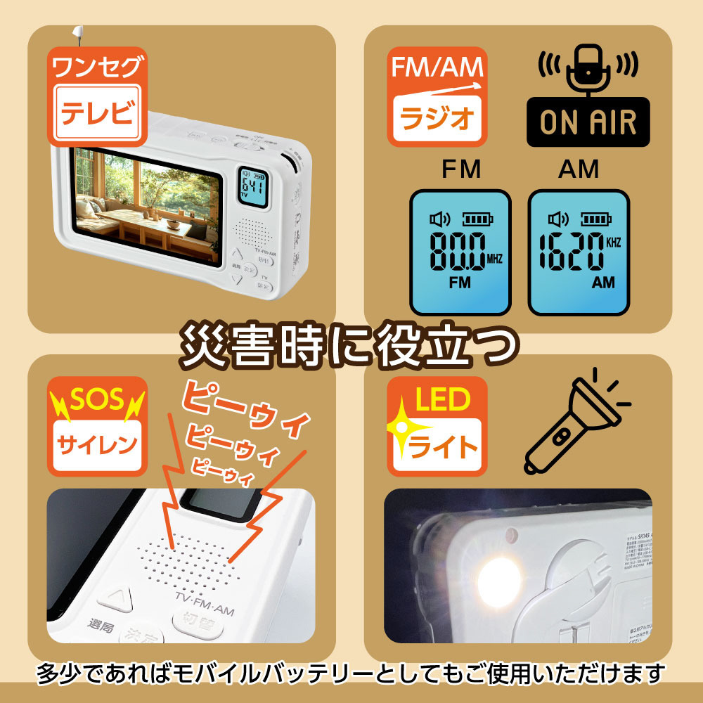 アウトドア・防災に役立つ多機能ワンセグテレビ