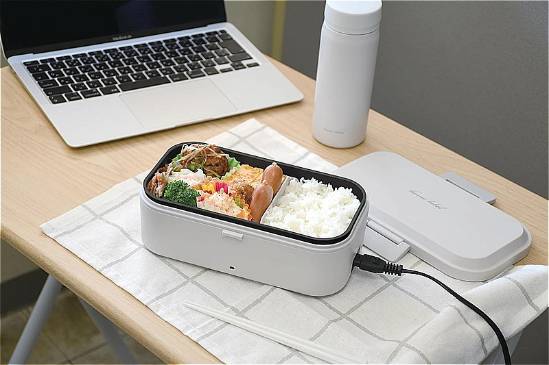 電気で温められるランチボックス。使い方簡単。仕切板付。内ぶた蒸気弁付。内ぶたシリコーンパッキン付で、汁モレしにくい。内容器は取り外しできるので洗いやすい。内容器に半分に入るご飯の目安 お茶碗(約)2杯分(1杯約200ml)電子レンジ・食器洗い乾燥機に使用しないでください。金属製の箸やスプーンを使用しないでください。内容器に傷が付いたり、ふっ素が剥がれる原因になります。加熱容器は絶対に丸洗いしないでください。