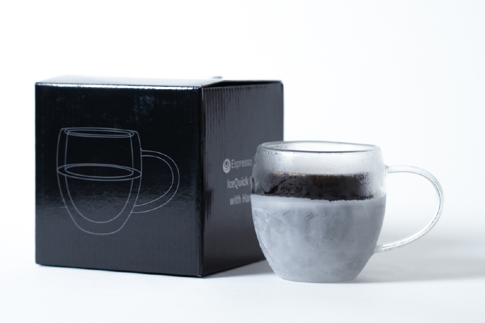 氷で薄まってしまうアイスコーヒーやアイスラテは美味しくない、そんなつまらない想いを消し去るために『IceQuick Glass』を開発しました。