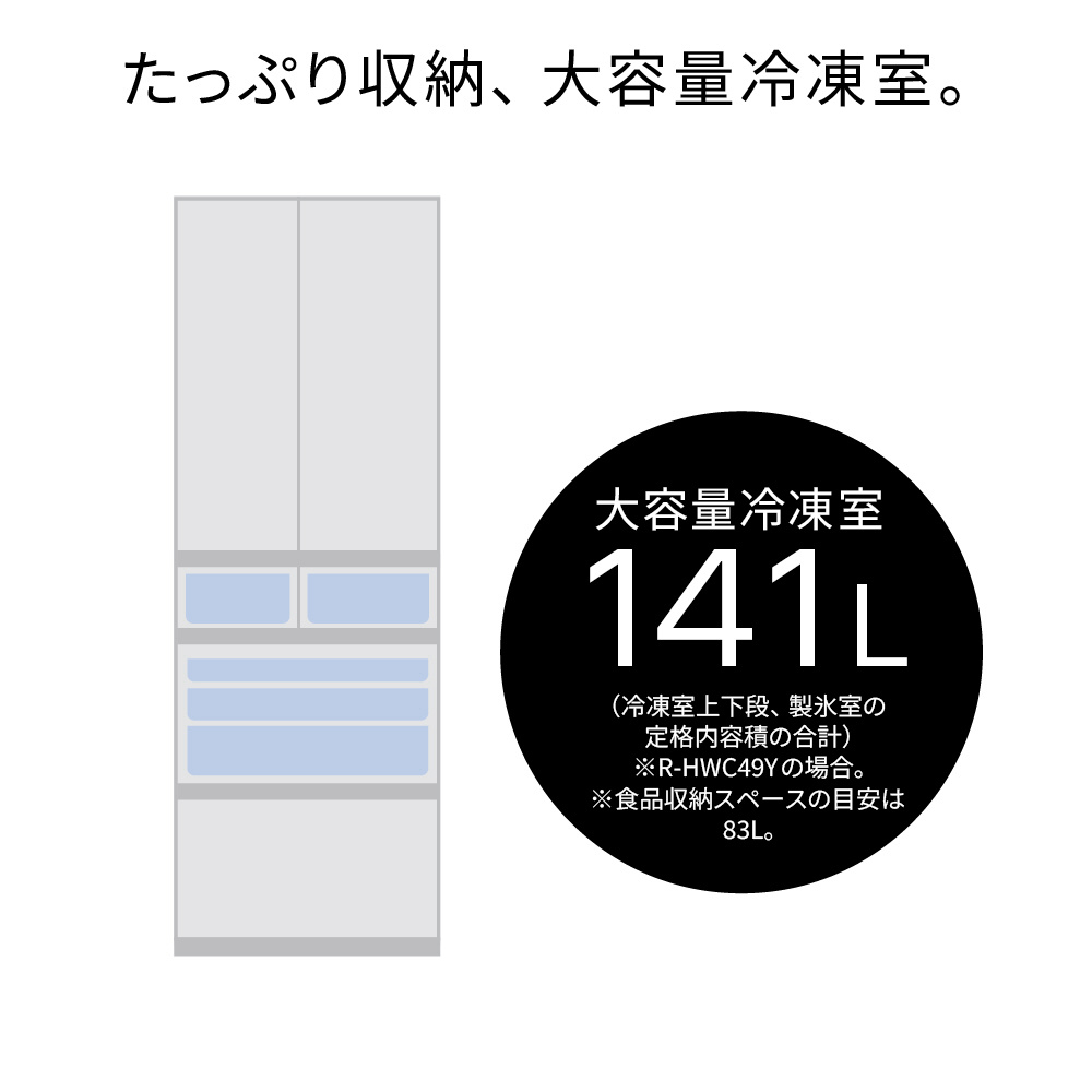 冷蔵庫 HWCタイプ ブラストモーブグレー R-HWC49Y H [幅65cm /485L /6ドア /観音開きタイプ]