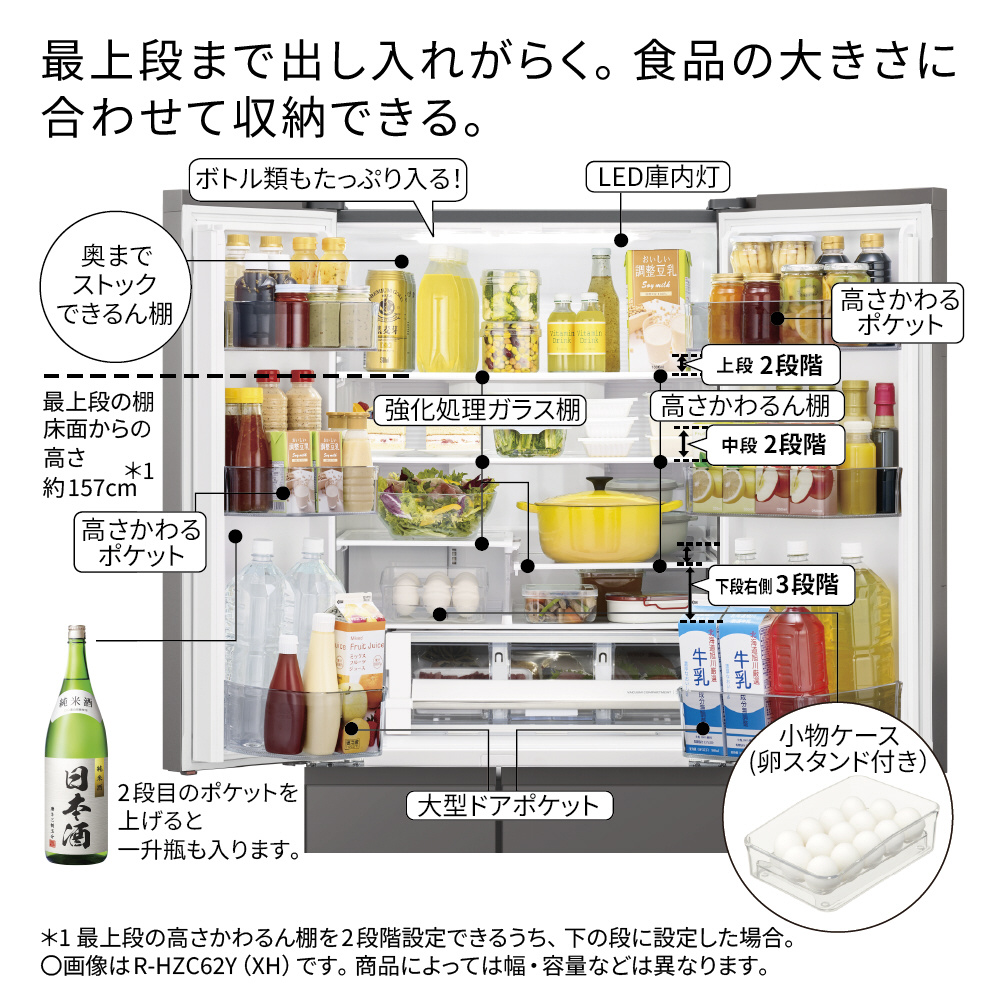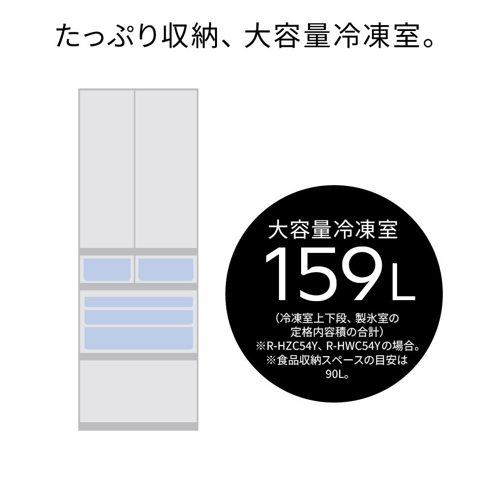 冷蔵庫 HZCタイプ チャコールグレー R-HZC54Y XH [幅65cm /540L /6ドア /観音開きタイプ /2026年]